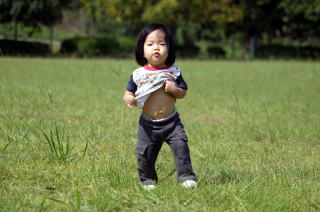 諫早の芝公園にみんなで行ったよ♪ でべそではありません!少しね♪