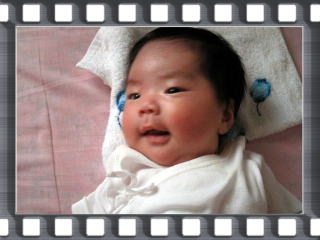 生まれたばかりの緋優ちゃんです〜♪ひいジイチャンに書いてもらいました。
