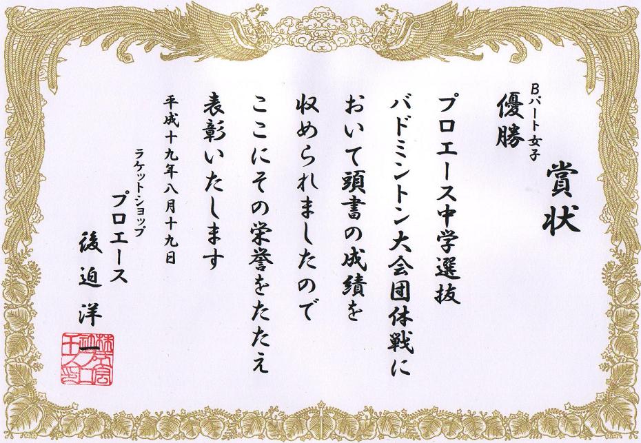 やりました! 中総体優勝です。 団体&個人シングル&個人ダブルス 全て優勝です。