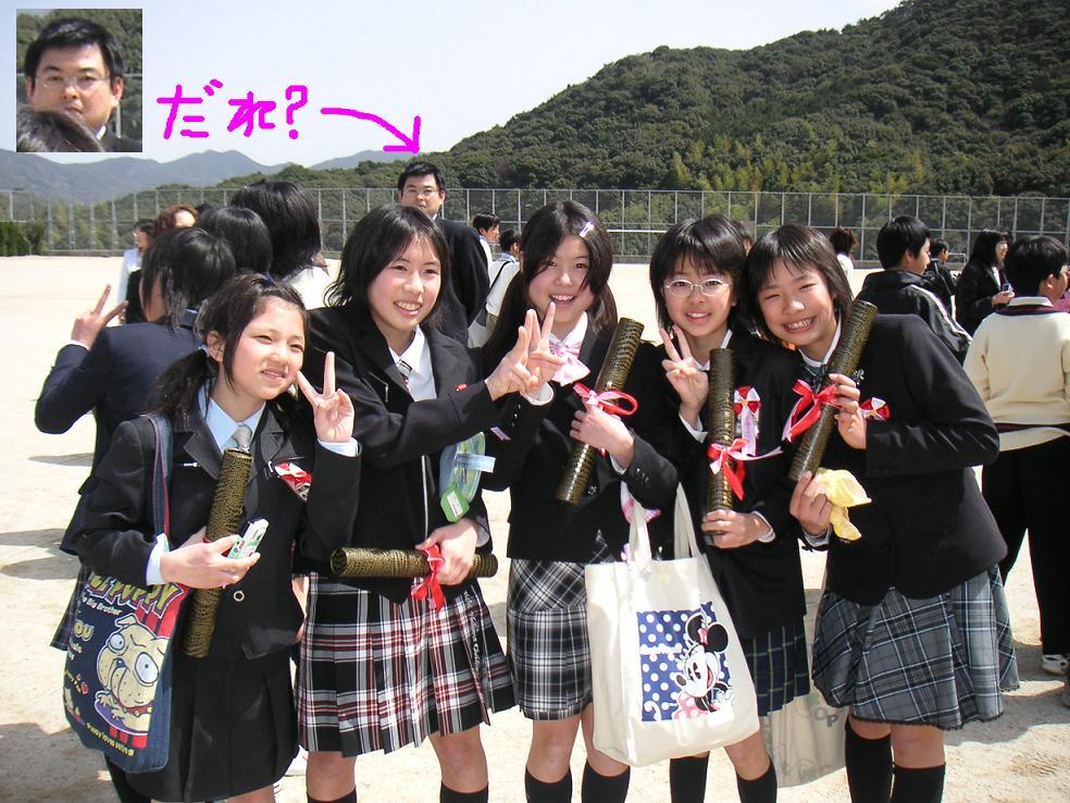卒業おめでとう、こっそり背後に立つカメラ目線のおっさん怪しいなぁ。(笑)