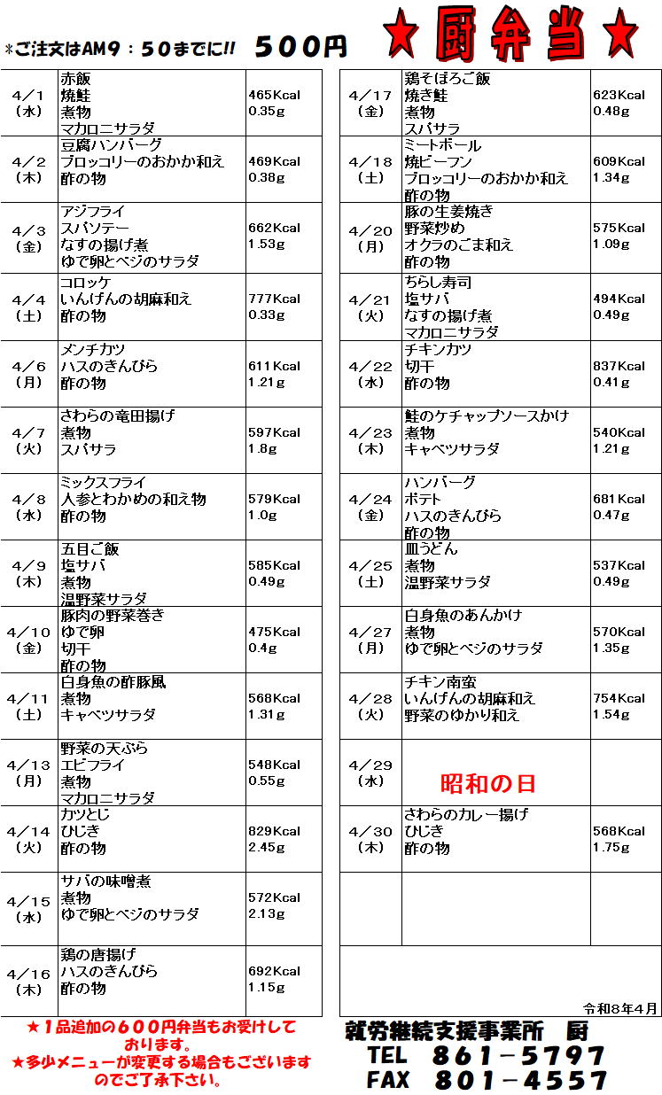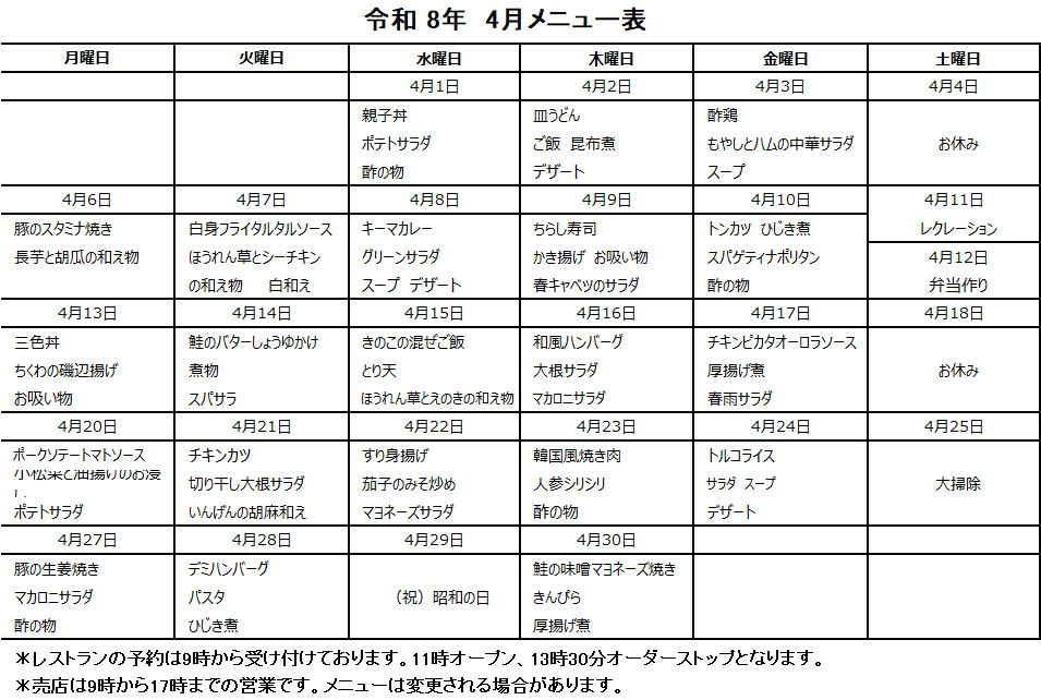 TOP|理事長あいさつ|沿 革|今月のメニュー レストラン あいる・びぃ(B型)| cafe あいる・bee(B型) 長崎市障害者相談支援事業所つどい|地域活動支援センターT型つどい 就労継続支援事業所 厨(B型)|グッデイ油木|グッデイ錦 キャンタ通信|情報開示|パンフレット
